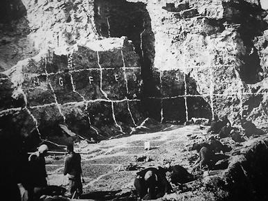 新的考古挖掘地点很快到达。这里距离鸡骨山约2公里,是一处地势较高的早已被废弃的石灰矿。矿墙约10米高,面向北方,成直角状陡立着,因为常年挖掘石灰石,矿墙很不稳定,似乎随时都会倒塌。中年人指着一条矿墙的裂隙说:“龙骨就在那里头,你们挖下去,保证有大的收获。”